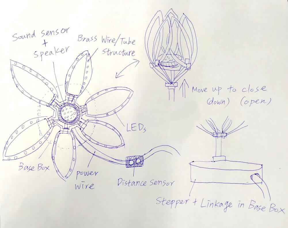 Initial Idea: Breath of Flora - Interactive Sound and Light Mechanical Flower